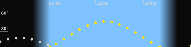 | Sonnenaufgang | 06:17 Uhr im Osten (αAz = 73.6°) |