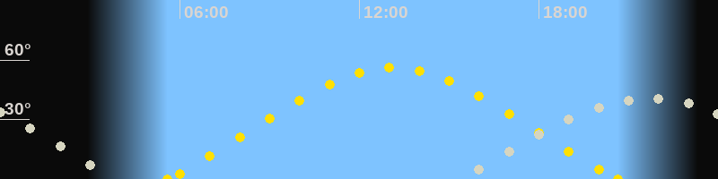 | Höchster Sonnenstand (Kulmination) | 13:06 Uhr (h = 56.2°) |