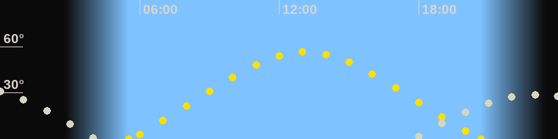 Höchster Sonnenstand (Kulmination)13:06 Uhr (h = 56.8°)