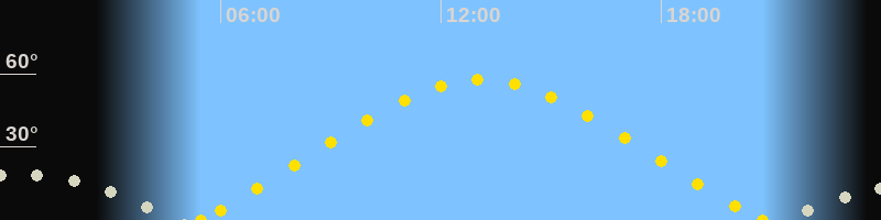 | Höchster Sonnenstand (Kulmination) | 13:06 Uhr (h = 57.5°) |