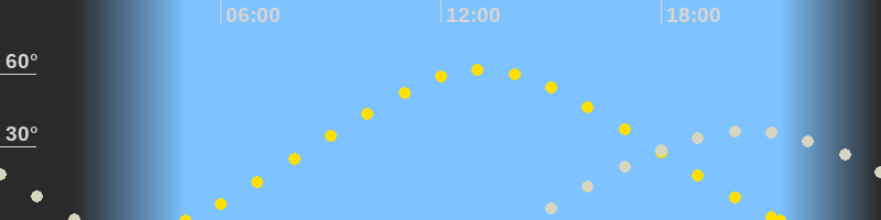 | Höchster Sonnenstand (Kulmination) | 13:08 Uhr (h = 61.8°) |
