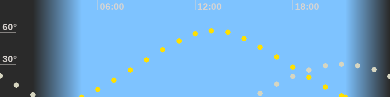 | Höchster Sonnenstand (Kulmination) | 13:08 Uhr (h = 61.9°) |