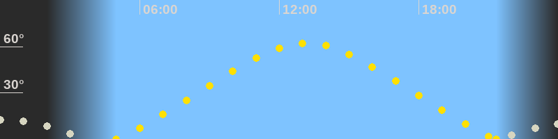 | Höchster Sonnenstand (Kulmination) | 13:09 Uhr (h = 62.3°) |