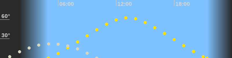 Höchster Sonnenstand (Kulmination)13:11 Uhr (h = 62.6°)