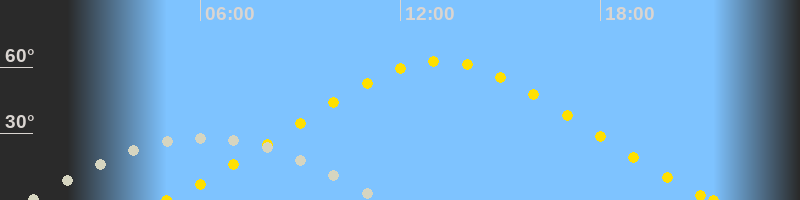 | Höchster Sonnenstand (Kulmination) | 13:11 Uhr (h = 62.7°) |