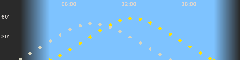 | Höchster Sonnenstand (Kulmination) | 13:12 Uhr (h = 62.7°) |