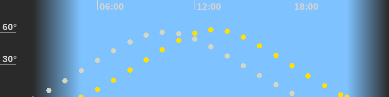 | Höchster Sonnenstand (Kulmination) | 13:12 Uhr (h = 62.7°) |