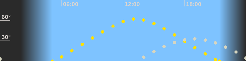 Höchster Sonnenstand (Kulmination)13:14 Uhr (h = 62.3°)