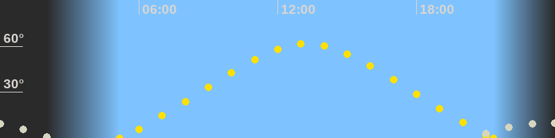 | Höchster Sonnenstand (Kulmination) | 13:15 Uhr (h = 61.7°) |