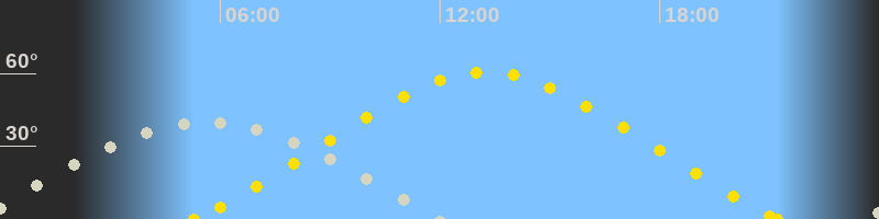 Höchster Sonnenstand (Kulmination)13:16 Uhr (h = 60.5°)