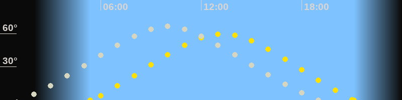 Höchster Sonnenstand (Kulmination)13:16 Uhr (h = 59.6°)