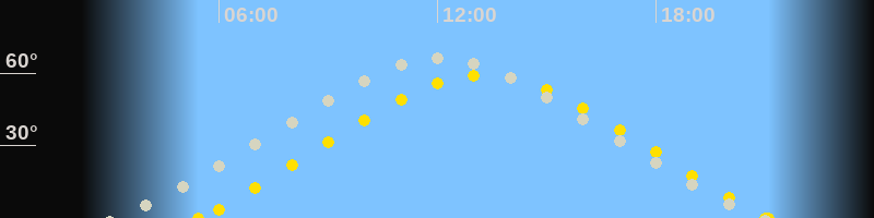 Höchster Sonnenstand (Kulmination)13:16 Uhr (h = 59.2°)
