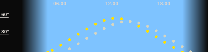 | Sonnenaufgang | 05:30 Uhr im Nordosten (αAz = 57.6°) |