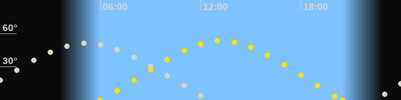 | Höchster Sonnenstand (Kulmination) | 13:14 Uhr (h = 53.5°) |