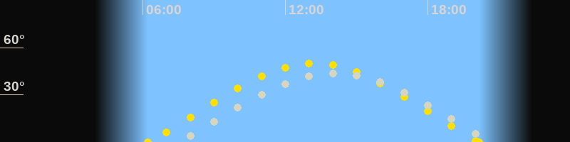 | Sonnenaufgang | 06:13 Uhr im Osten (αAz = 71.7°) |