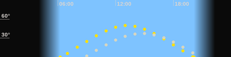 | Sonnenaufgang | 06:15 Uhr im Osten (αAz = 72.3°) |