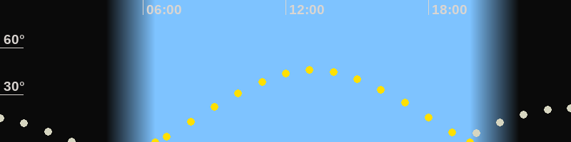 Höchster Sonnenstand (Kulmination)13:08 Uhr (h = 45.9°)