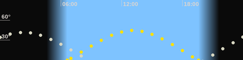 | Höchster Sonnenstand (Kulmination) | 13:07 Uhr (h = 44.4°) |