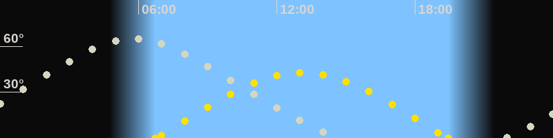 | Höchster Stand (Kulmination) | 05:42 Uhr (h=64.8°) |