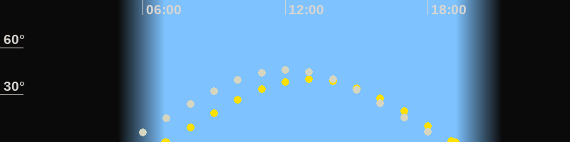 Höchster Stand (Kulmination)12:04 Uhr (h=46.5°)