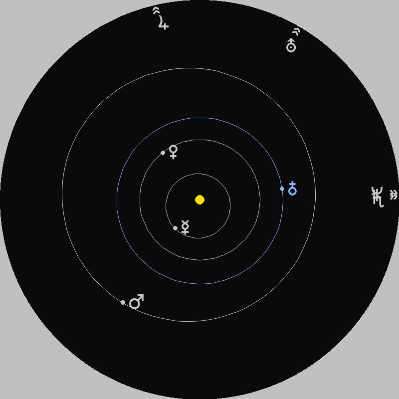 | f Merkur g Venus l Erde h Mars j Jupiter S Saturn A Uranus G Neptun |