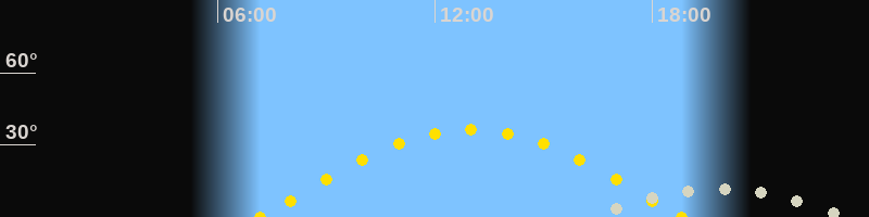 | Höchster Sonnenstand (Kulmination) | 13:00 Uhr (h = 36.3°) |
