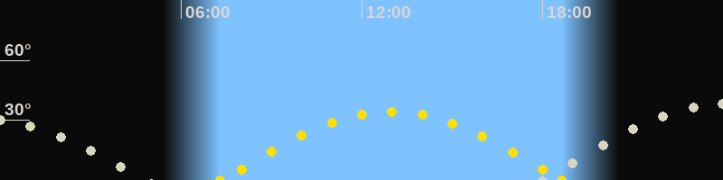 Höchster Sonnenstand (Kulmination)12:58 Uhr (h = 34.3°)