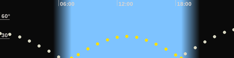 | Höchster Sonnenstand (Kulmination) | 12:58 Uhr (h = 33.9°) |