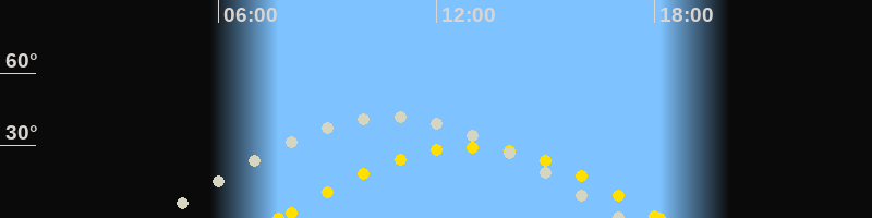 Höchster Sonnenstand (Kulmination)12:55 Uhr (h = 29.5°)