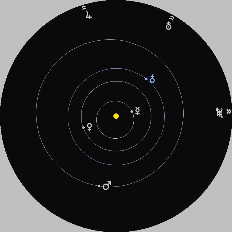 | f Merkur g Venus l Erde h Mars j Jupiter S Saturn A Uranus G Neptun |