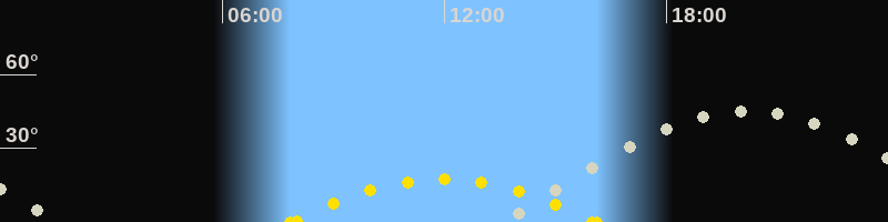 | Höchster Sonnenstand (Kulmination) | 11:59 Uhr (h = 17.5°) |
