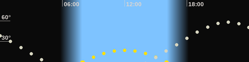 | Höchster Sonnenstand (Kulmination) | 11:59 Uhr (h = 17.2°) |