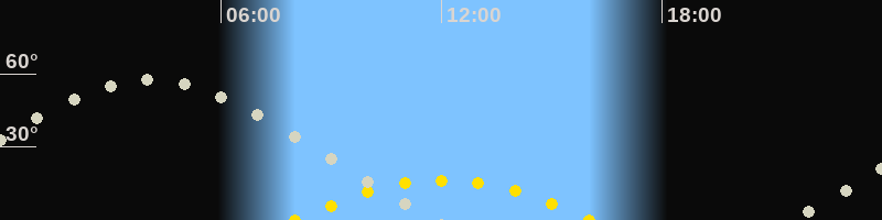 | Höchster Sonnenstand (Kulmination) | 12:02 Uhr (h = 16.4°) |