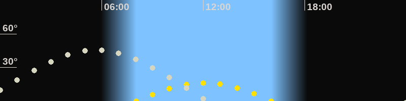 | Höchster Sonnenstand (Kulmination) | 12:03 Uhr (h = 16.2°) |