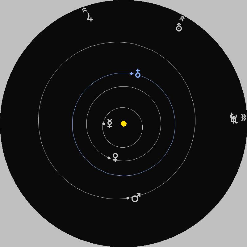 | f Merkur g Venus l Erde h Mars j Jupiter S Saturn A Uranus G Neptun |