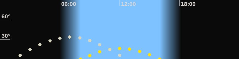 | Höchster Stand (Kulmination) | 07:04 Uhr (h=33.8°) |
