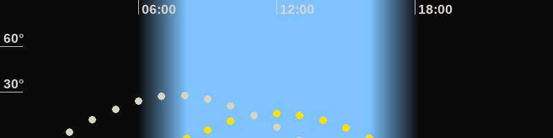 | Höchster Stand (Kulmination) | 07:44 Uhr (h=28.1°) |