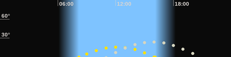 | Höchster Stand (Kulmination) | 15:45 Uhr (h=23.7°) |