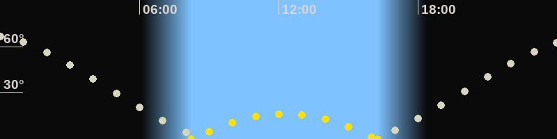 | Höchster Sonnenstand (Kulmination) | 12:14 Uhr (h = 16.5°) |