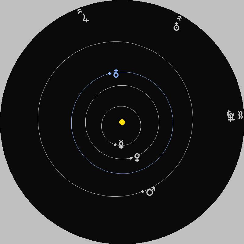 | f Merkur g Venus l Erde h Mars j Jupiter S Saturn A Uranus G Neptun |