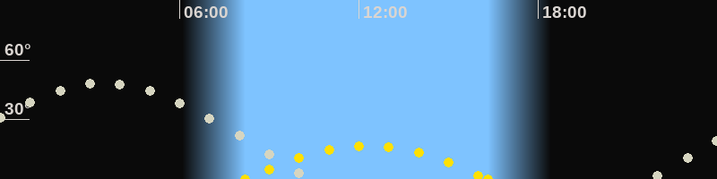 | Höchster Sonnenstand (Kulmination) | 12:16 Uhr (h = 16.9°) |