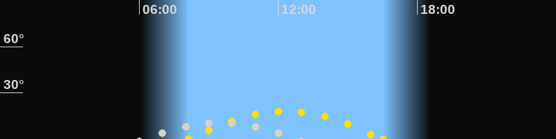 | Höchster Stand (Kulmination) | 09:28 Uhr (h=10.6°) |