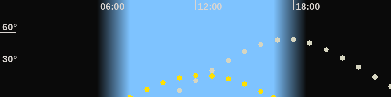| Höchster Sonnenstand (Kulmination) | 12:22 Uhr (h = 20.4°) |