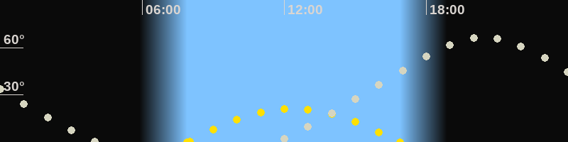| Höchster Sonnenstand (Kulmination) | 12:23 Uhr (h = 21.2°) |