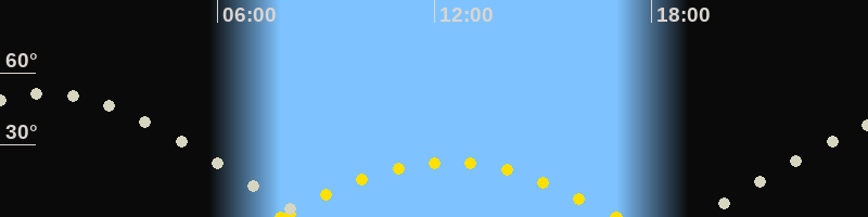 | Höchster Sonnenstand (Kulmination) | 12:24 Uhr (h = 22.8°) |