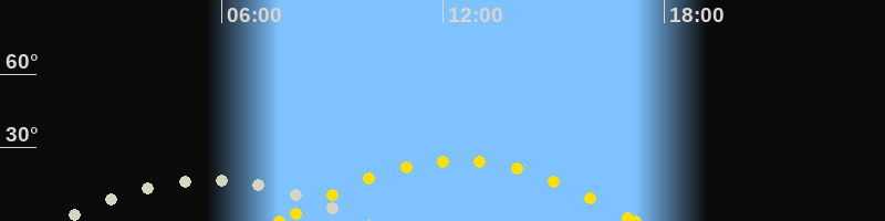 | Höchster Stand (Kulmination) | 05:44 Uhr (h=16.9°) |