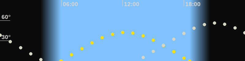 Höchster Sonnenstand (Kulmination)12:15 Uhr (h = 42.4°)