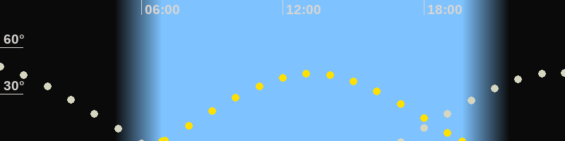 Höchster Sonnenstand (Kulmination)13:14 Uhr (h = 43.2°)