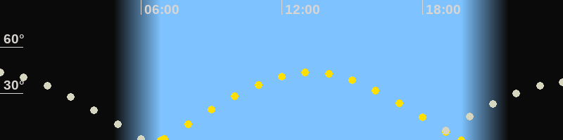 Höchster Sonnenstand (Kulmination)13:14 Uhr (h = 43.6°)