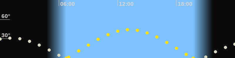 | Höchster Sonnenstand (Kulmination) | 13:13 Uhr (h = 44.3°) |